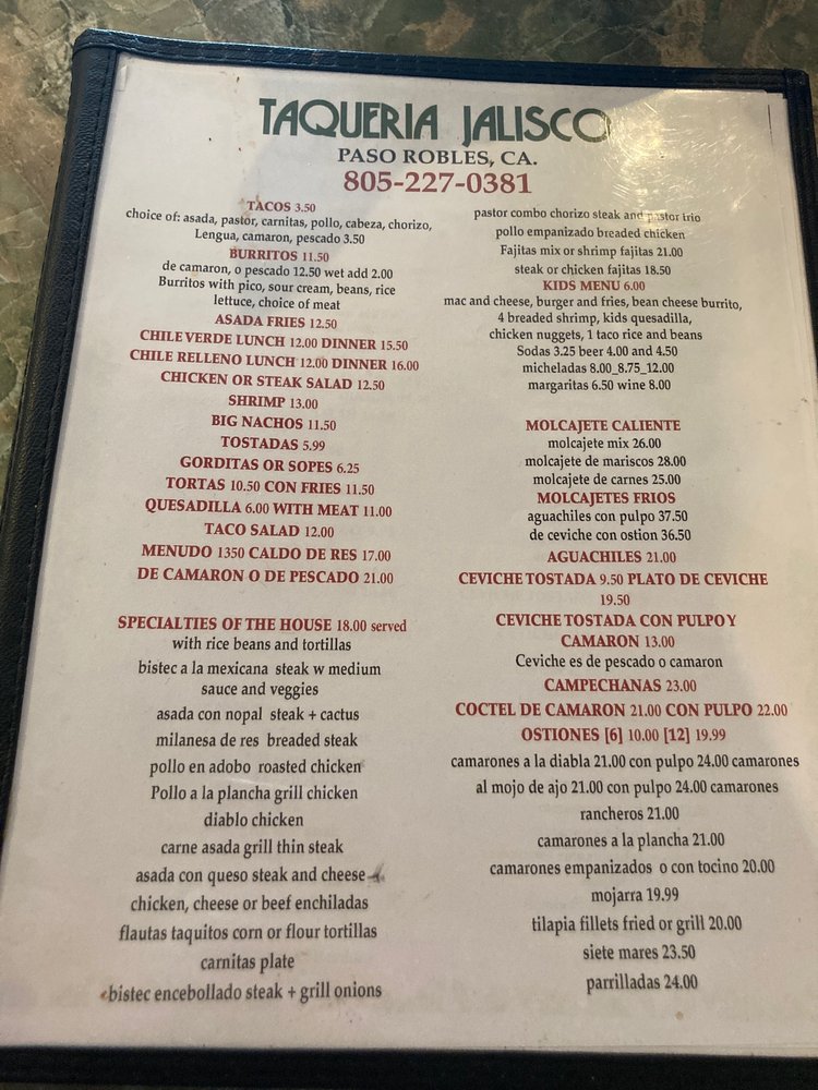 Taqueria Jalisco Paso Robles Menu (Update 2025)